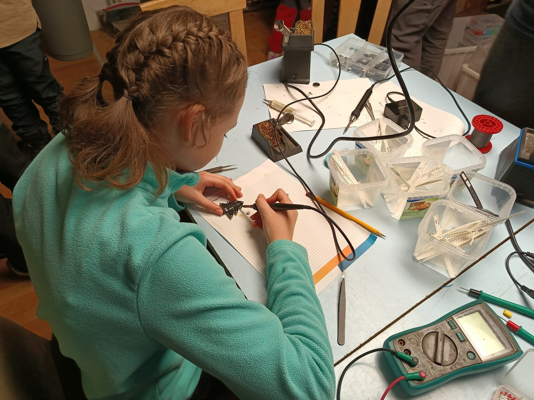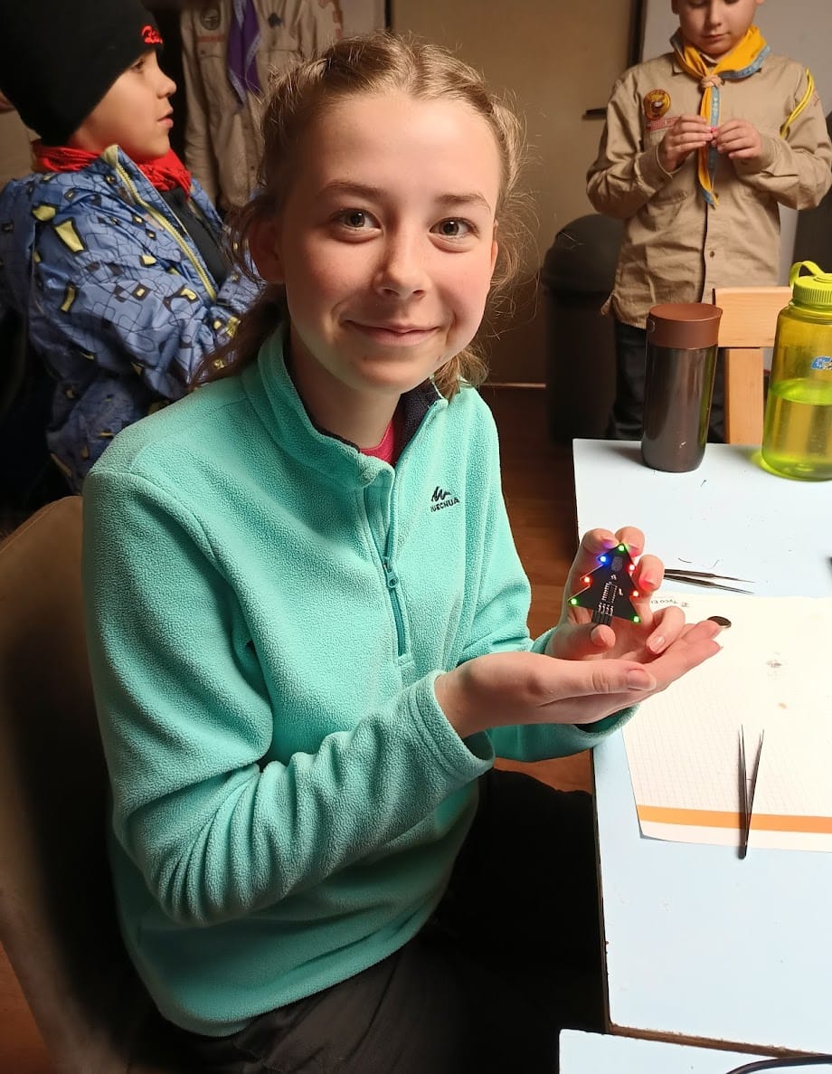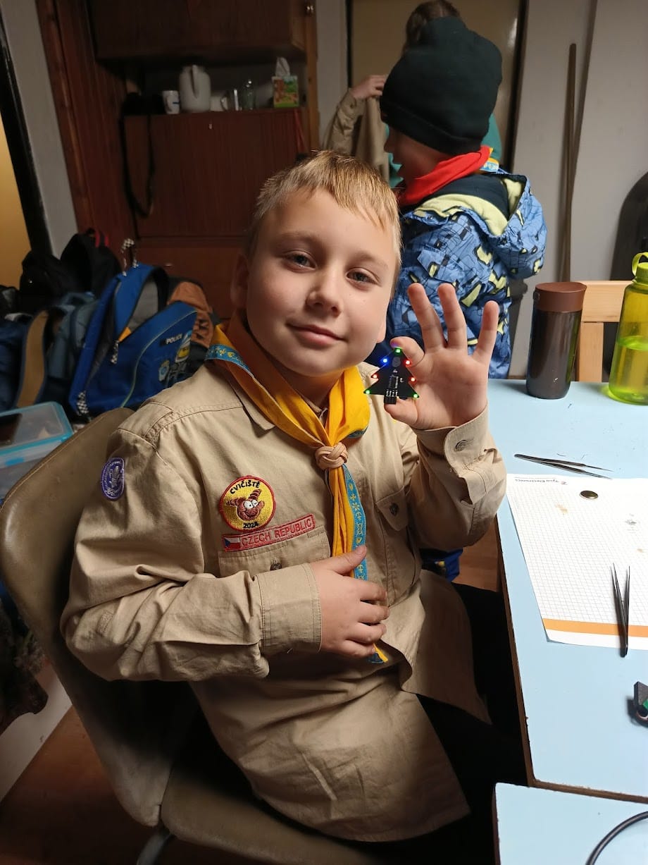 Zatímco se vedle pilně cvičila hláskovací tabulka a navazovala spojení se stanicemi a skauty po celém světě a venku probíhala stopovací hra s ručními radiostanicemi, vyráběly u nás děti nové programovatelné RISC-V vánoční stromečky.