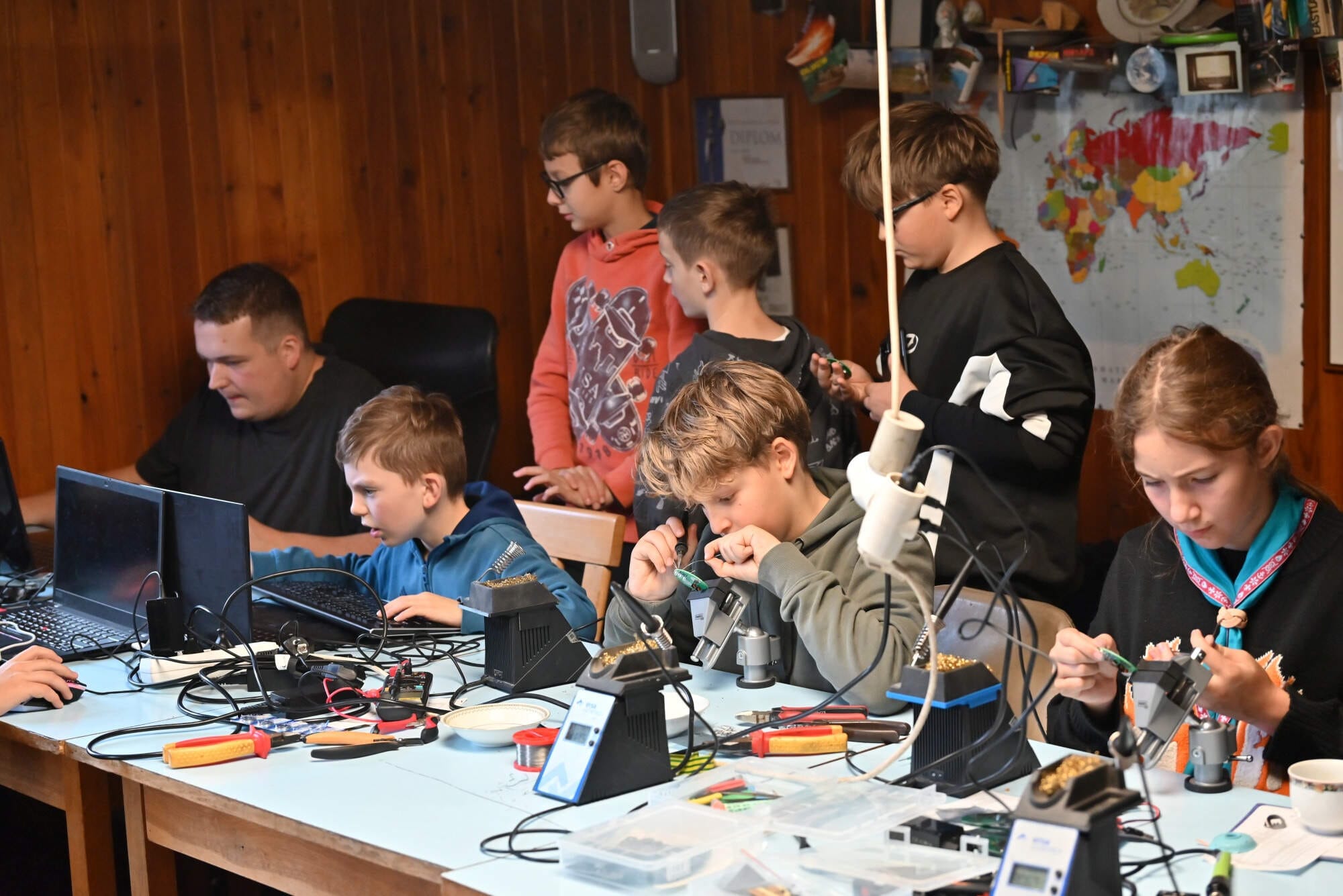 Děti si tak mohly osahat základy pájení a rovnou zkusit pípat první zprávy do světa.