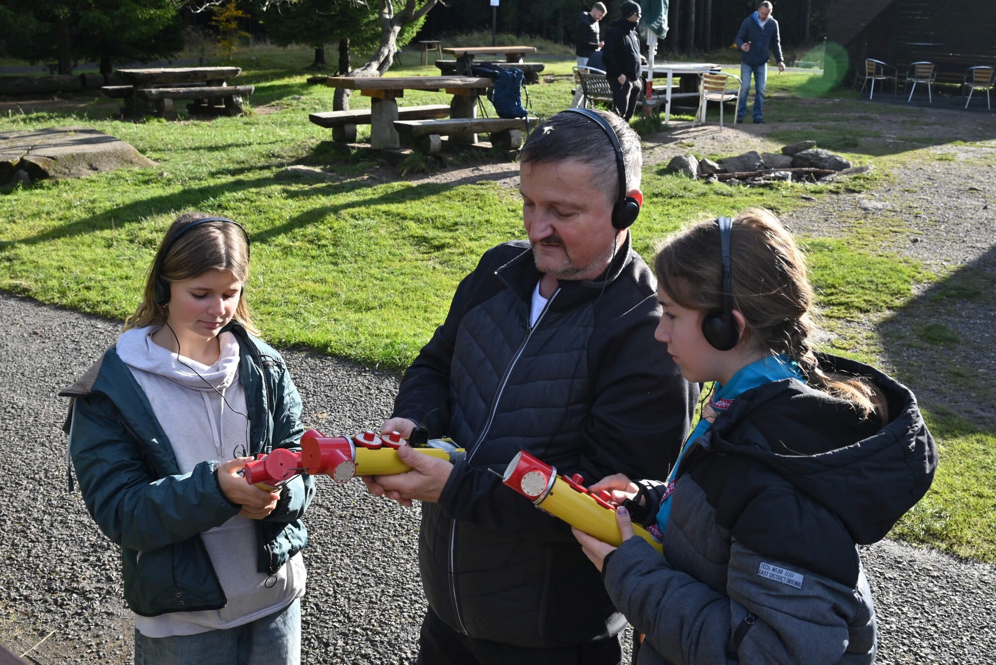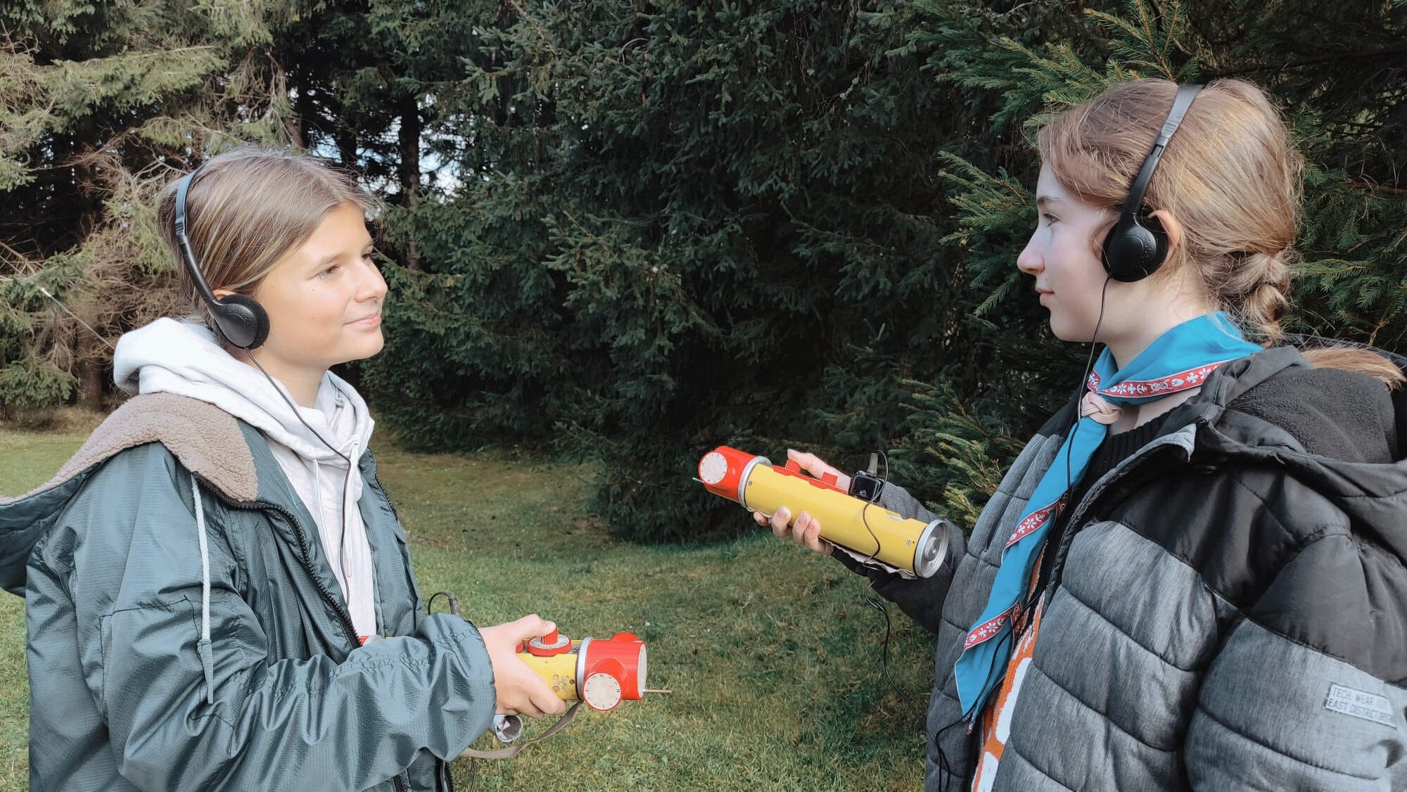 S ručními anténami hledali skryté vysílače („lišky“) v okolí základny.
