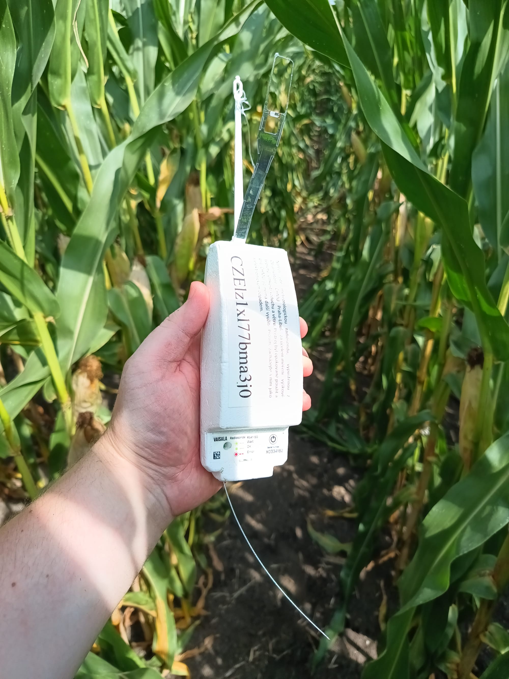 O pár kilometrů dál se mi podařilo odlovit i spadlou ranní meteosondu. Narozdíl od té naší se pohodlně válela v poli s kukuřicí.